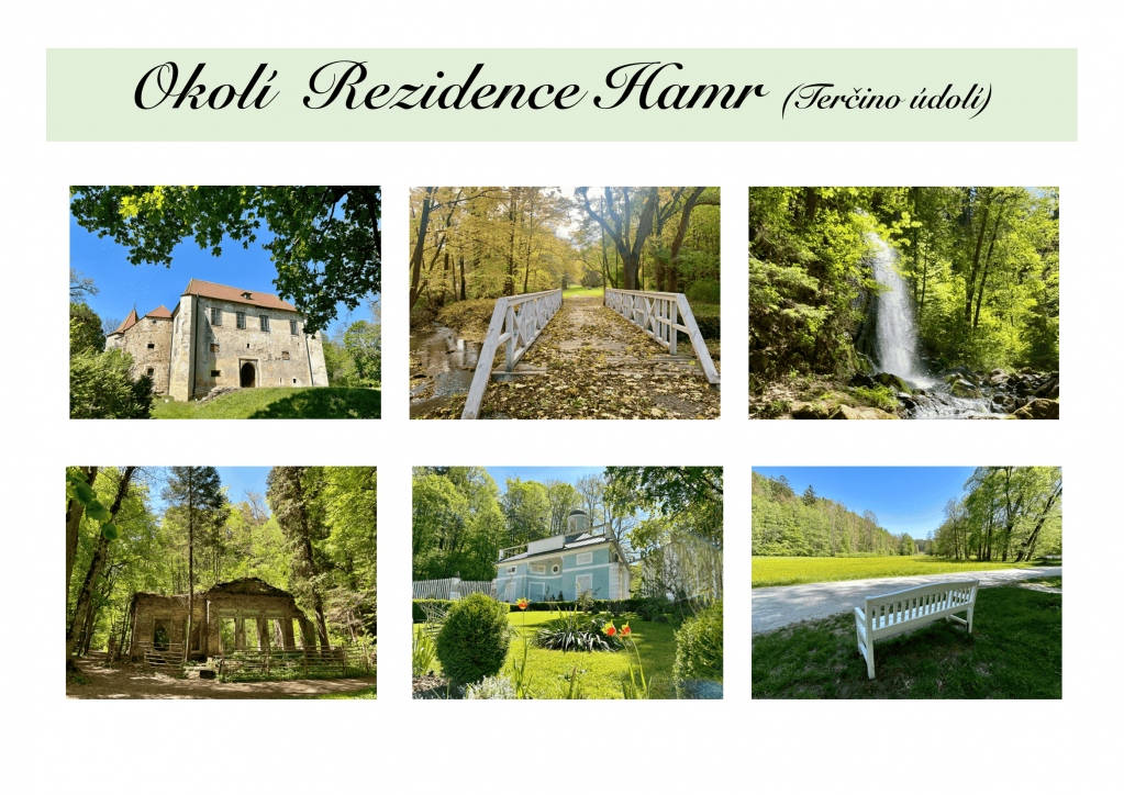 REZIDENCE HAMRRezidence Hamr se nachází v Terčině údolí, v tichém objetí luk, lesů a vod v srdci Novohradských hor. Je to romantické místo s duší, kde se zpomalí čas a každý nádech voní přírodou. Klid, prostor a harmonie zde tvoří dokonalé zázemí pro odpočinek ve dvou i pro velké rodiny či setkání s přáteli.